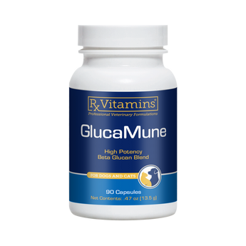 GlucaMune™ enthält das hochwirksame, patentierte Beta-Glucan, das für Haustiere erhältlich ist, komplexiert mit Astragaluswurzel- und Süßholzwurzelkonzentraten in kleinen, einfach zu verabreichenden Kapseln zur Verwendung bei allen veterinärmedizinischen Haustieren. Bei Patienten, die Schwierigkeiten mit der Einnahme von Pillen haben, können die Kapseln auch geöffnet und mit der Nahrung gemischt werden.