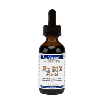 Vitamin B12 har traditionellt administrerats parenteralt för kroniska enteropatier och EPI. Det kan vara utmanande för kunder att ta in sina husdjur varje månad för dessa injektioner. Nyligen genomförda studier har funnit att daglig oral administrering av cyanokobalamin lika effektivt ökar serumkobalaminnivåerna som månatliga injektioner. Rx Vitamins introducerar stolt Rx B12 Forte, i ett mycket välsmakande flytande format för enkel och bekväm oral administrering av cyanokobalamin till dina patienter. Flaskan på 60 ml kommer att försörja en större (>50 pund) patient i en månad, och för en patient som väger mindre än 25 pund kommer den att hålla i 4 månader.