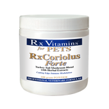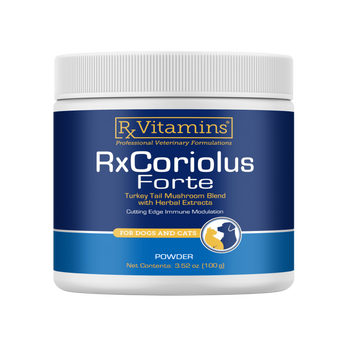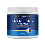 RxCoriolus Forte innehåller ekologiska extrakt från fruktkropparna (svampar) av fem av de mest kraftfulla medicinska svamparna som finns tillgängliga idag. Denna pulveriserade, mycket välsmakande blandning av svamp innehåller också två kinesiska örter, astragalusrot (huang qi) och lakritsrot (gan cao). Dessa 2 örter har upptäckts i studier för att förbättra cellmedierad och humoral immunitet. Denna formel har en tydlig fördel jämfört med produkter från mycel som odlas på spannmål eftersom den är mycket låg i kolhydrater och mycket hög i betaglukan.