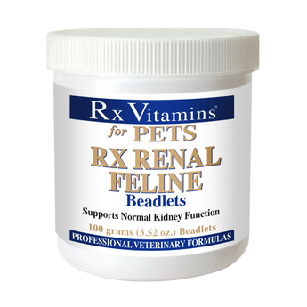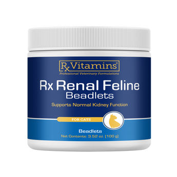 Rx Renal Feline beadlets är en komplex formulering av flera botaniska extrakt och nutraceuticals. Denna unika formel har omslutits av glycerolstearat, ett intetsägande, lipofilt material som gör smaken helt intetsägande och acceptabel för kattpatienten.